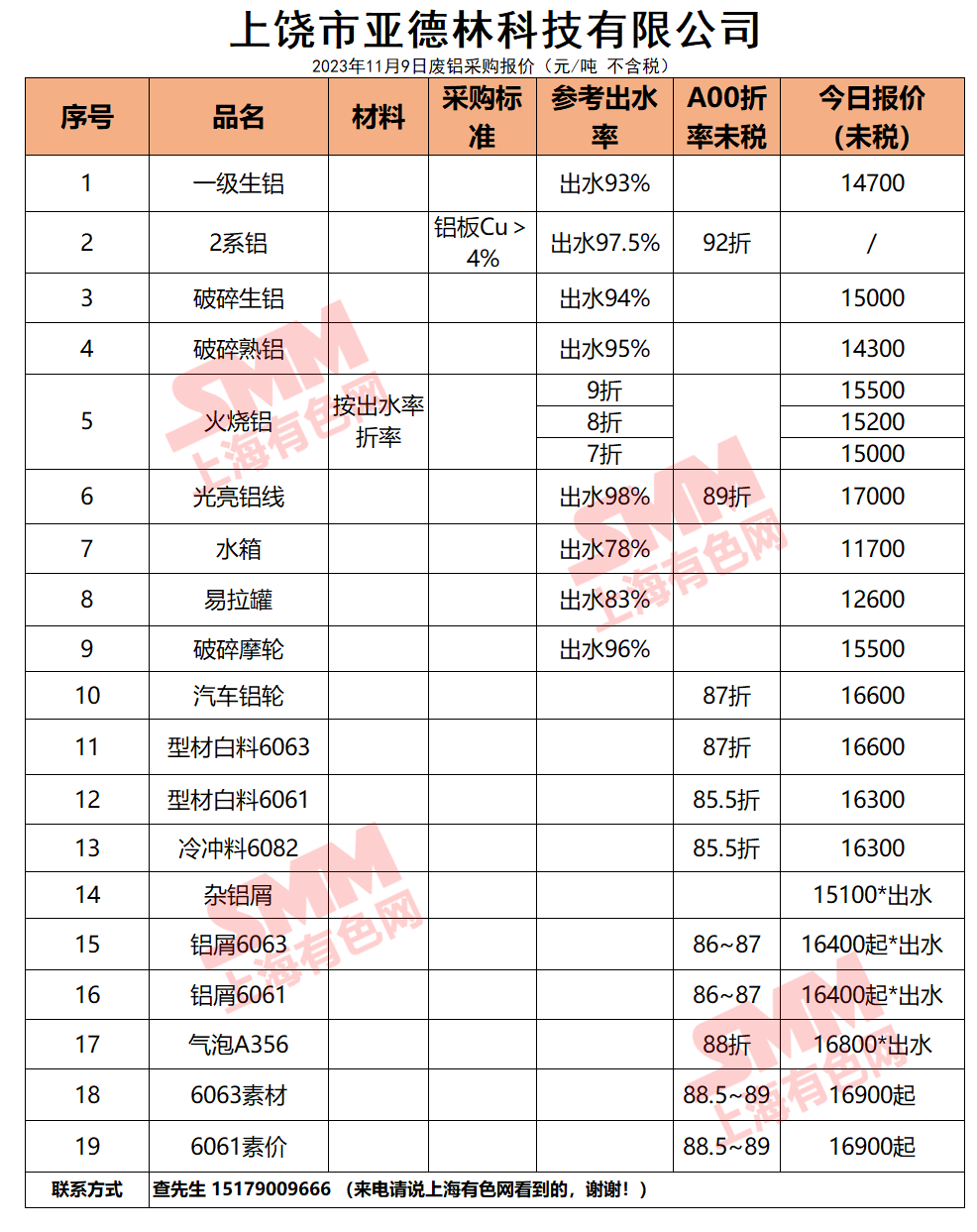 11月9日上饶市亚德林 废铝采购报价
