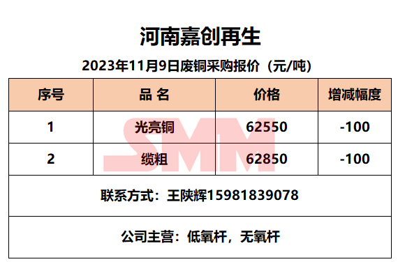 11月9日河南嘉创 废铜采购报价