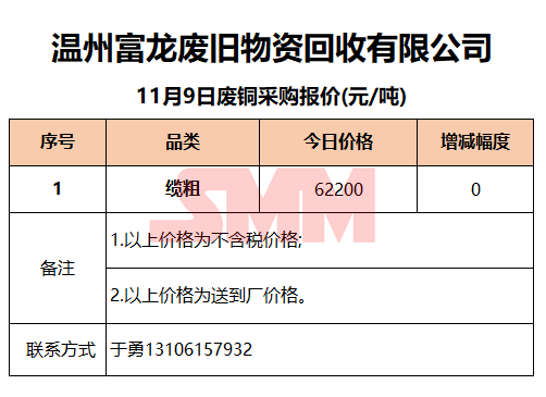 今日温州富龙废旧,废铜采购报价已更新,有货的朋友欢迎联系我们!