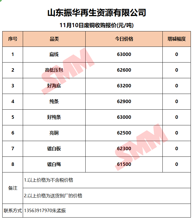 今日山东振华,废铜收购报价已更新,有货的朋友欢迎联系我们!