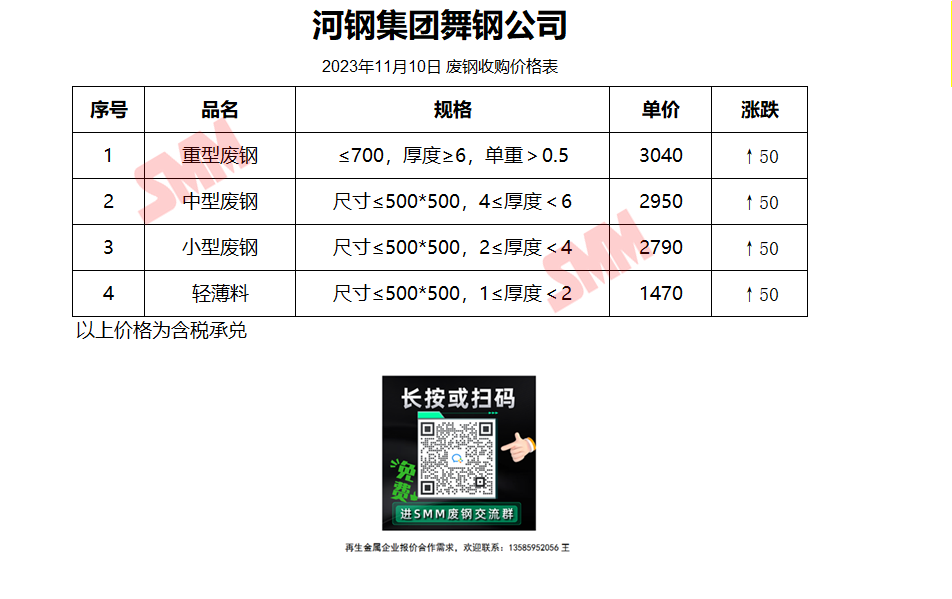 今日河钢集团舞钢公司 废钢收购报价已更新,有货的朋友欢迎联系我们!