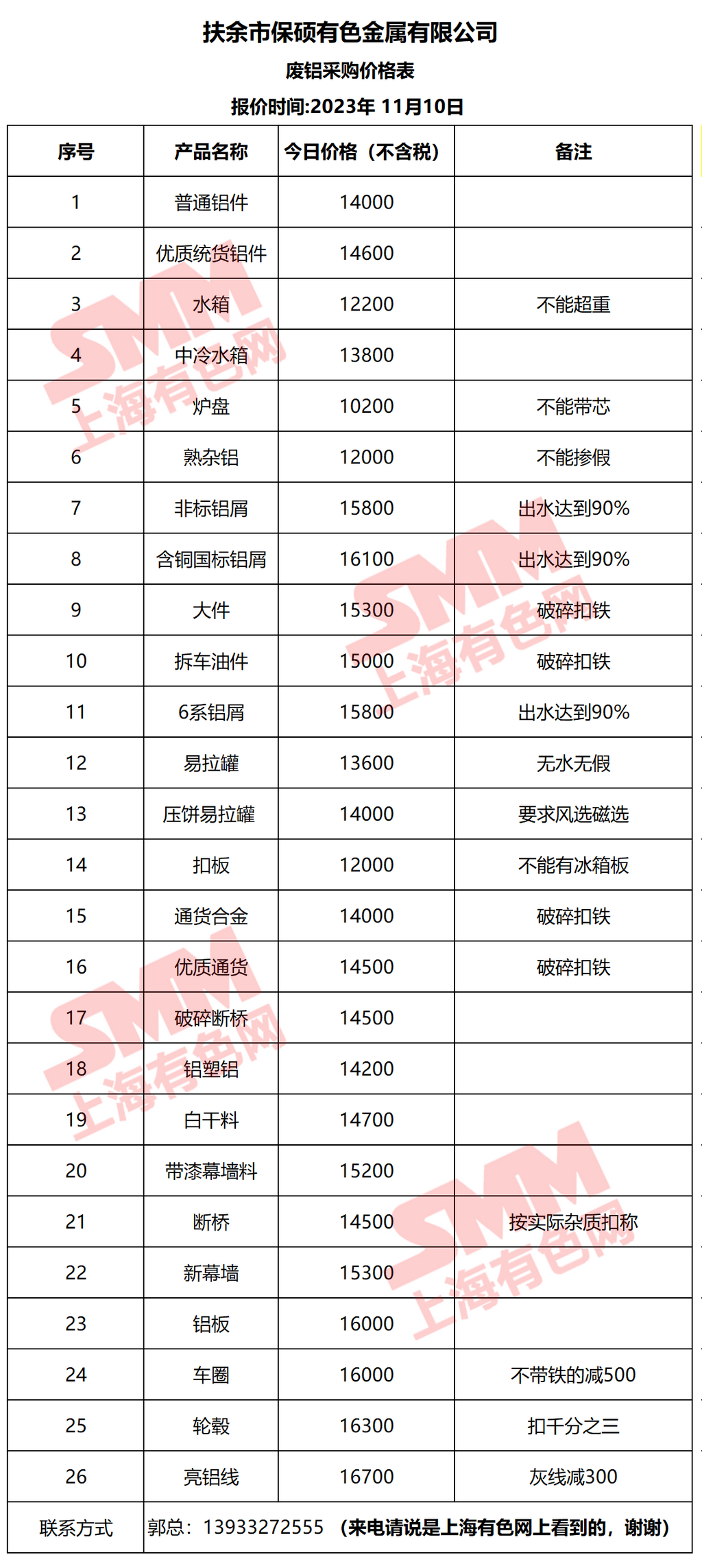 11月10保硕金属 废铝采购报价