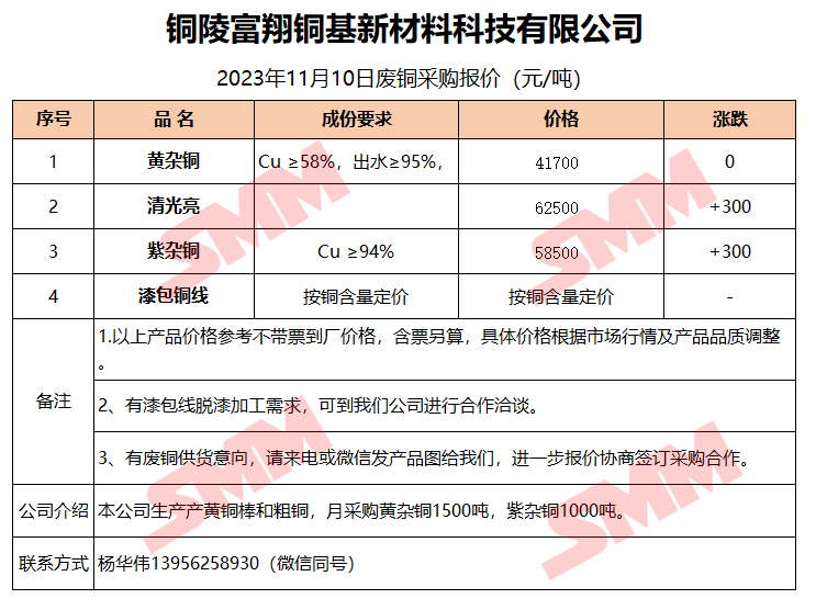 11月10日铜陵富翔 废铜采购报价