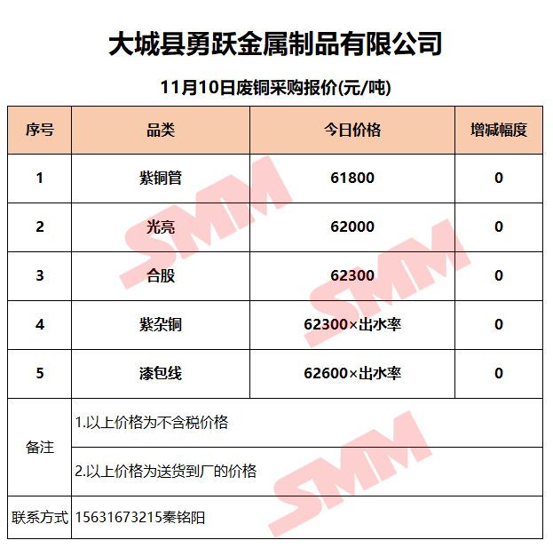今日大城勇跃,废铜采购报价已更新,有货的朋友欢迎联系我们!