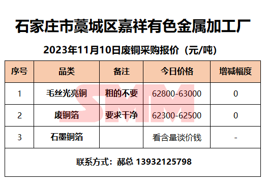 今日嘉祥有色金属,废铜采购报价已更新,有货的朋友欢迎联系我们!