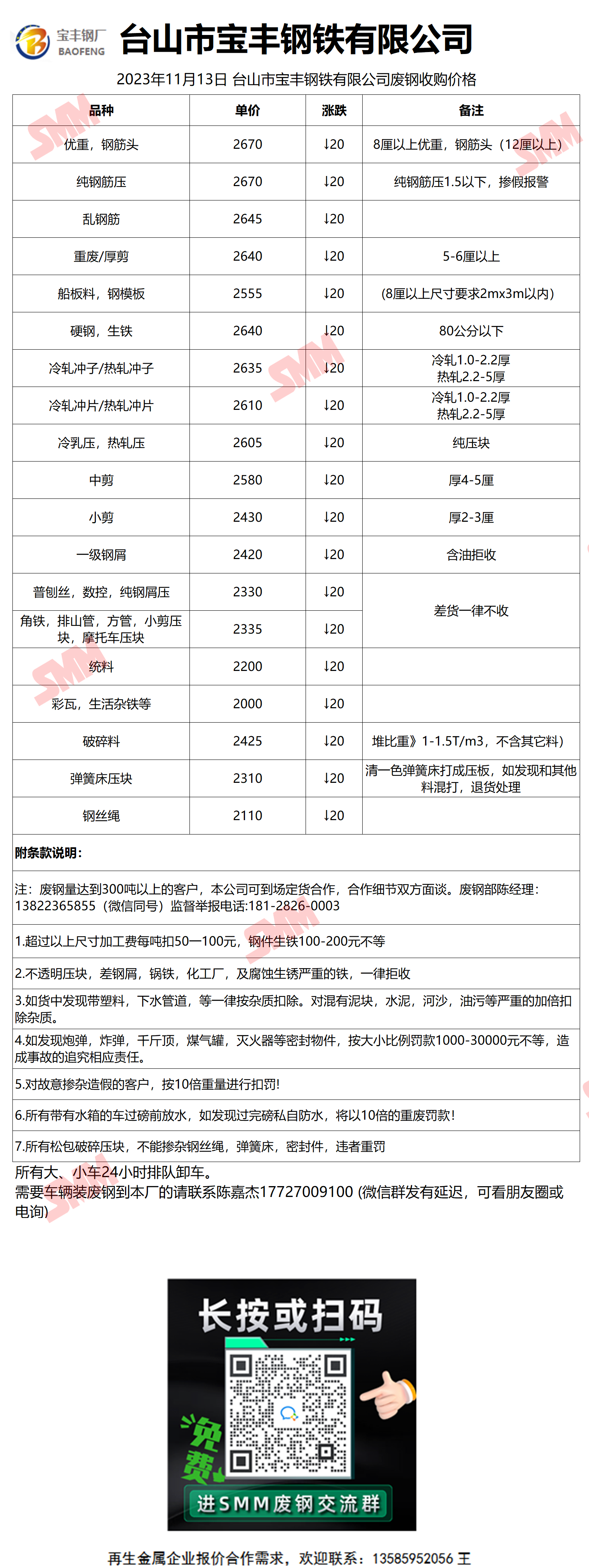 11月13日(10时45分)宝丰钢铁 废钢收购报价
