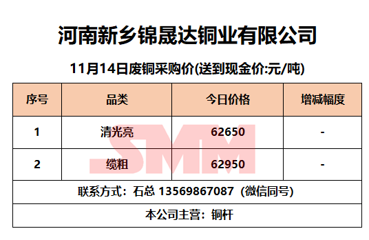 11月14日河南锦晟达 废铜采购报价