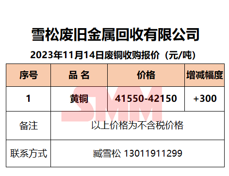 11月14日雪松废旧 废铜收购报价