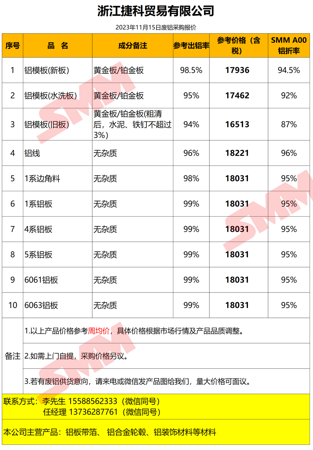 今日捷科贸易 废铝采购报价已更新,有货的朋友欢迎联系我们!