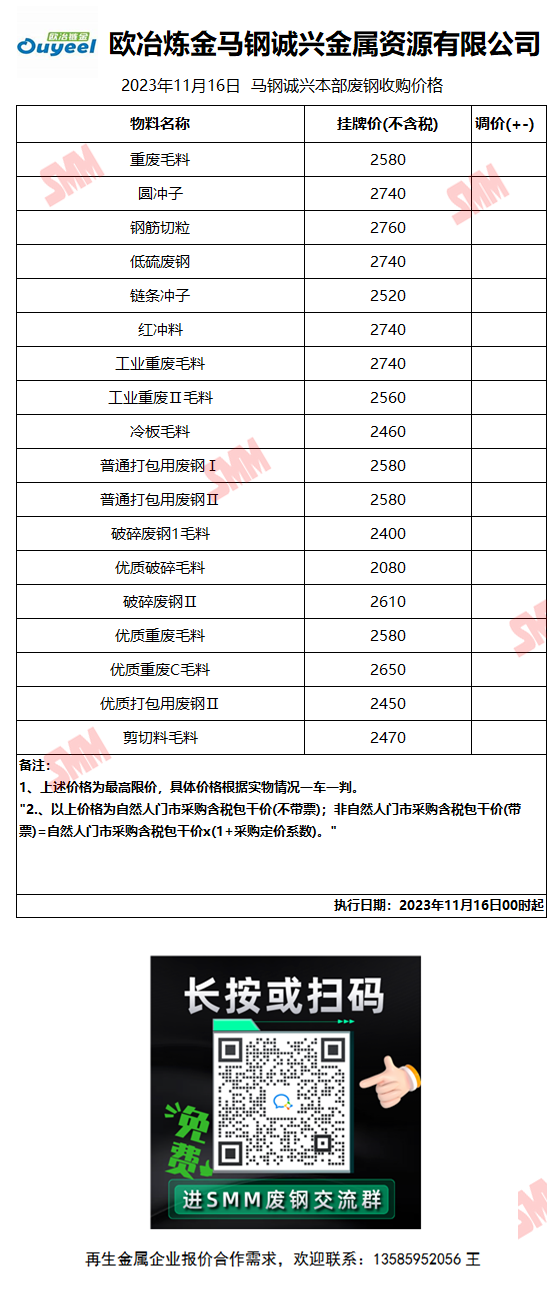 11月16日马钢诚兴 废钢收购报价