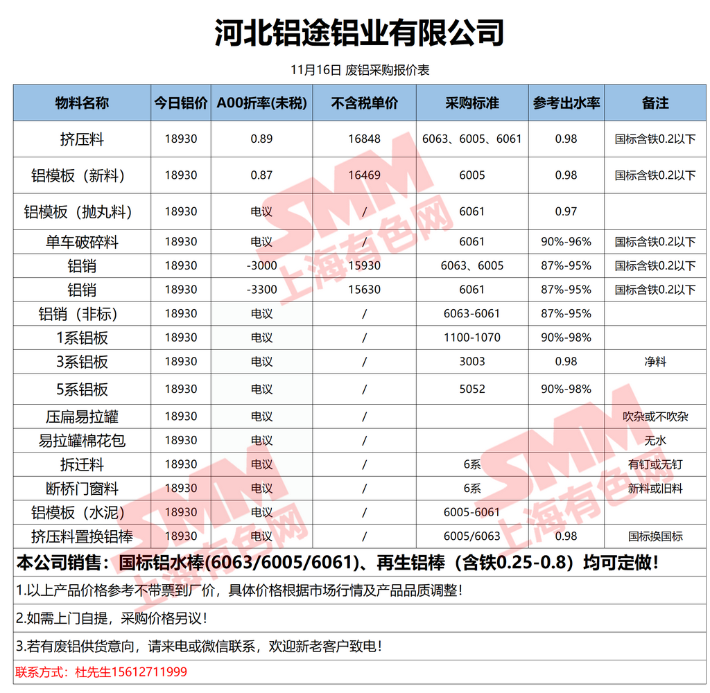 今日河北铝途铝业有限公司 废铝采购报价已更新,有货的朋友欢迎联系我们!