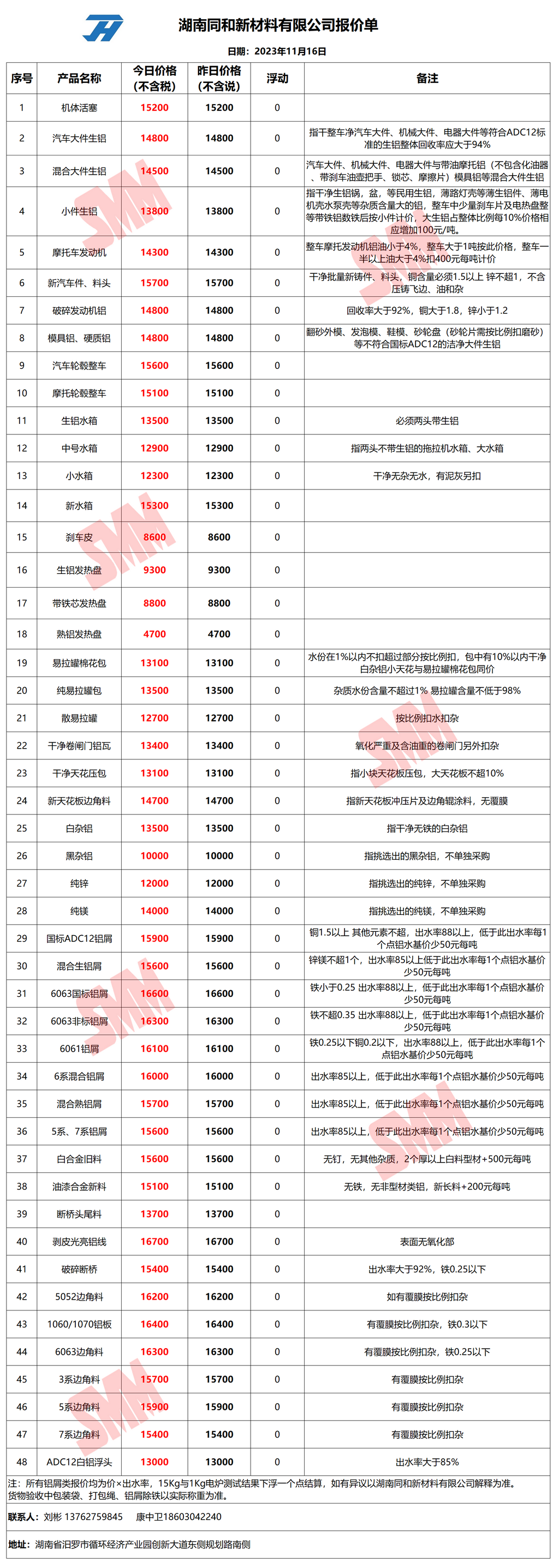 今日湖南同和 废铝采购报价已更新,有货的朋友欢迎联系我们!