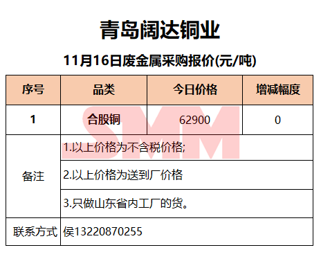 11月16日青岛阔达 废金属采购报价