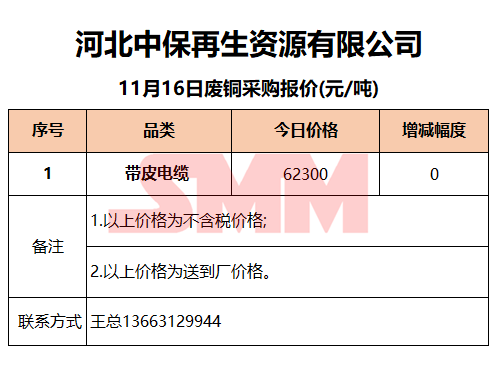 11月16日河北中保 废铜采购报价