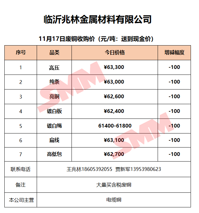今日临沂兆林金属 ,废铜收购报价已更新,有货的朋友欢迎联系我们!