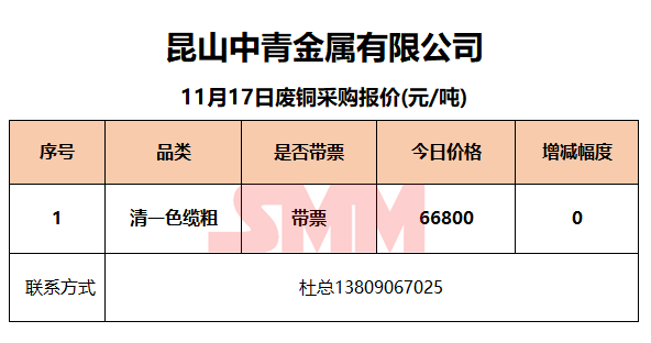 今日昆山中青金属 ,废铜采购报价已更新,有货的朋友欢迎联系我们!