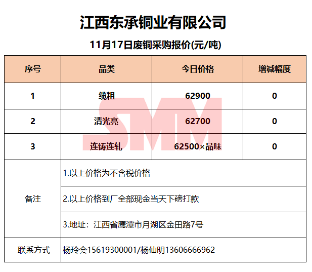 今日江西东承铜业/博升铜业 废铜采购报价已更新,有货的朋友欢迎联系我们!