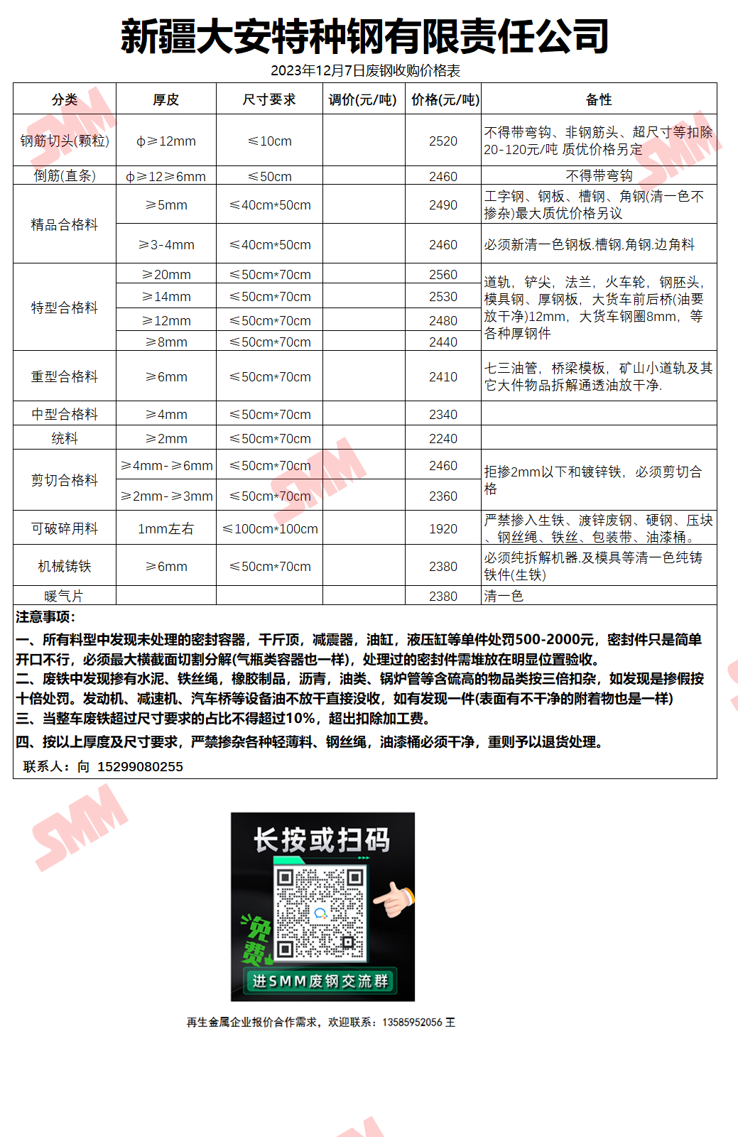 今日新疆大安钢铁 废钢收购报价已更新,有货的朋友欢迎联系我们!