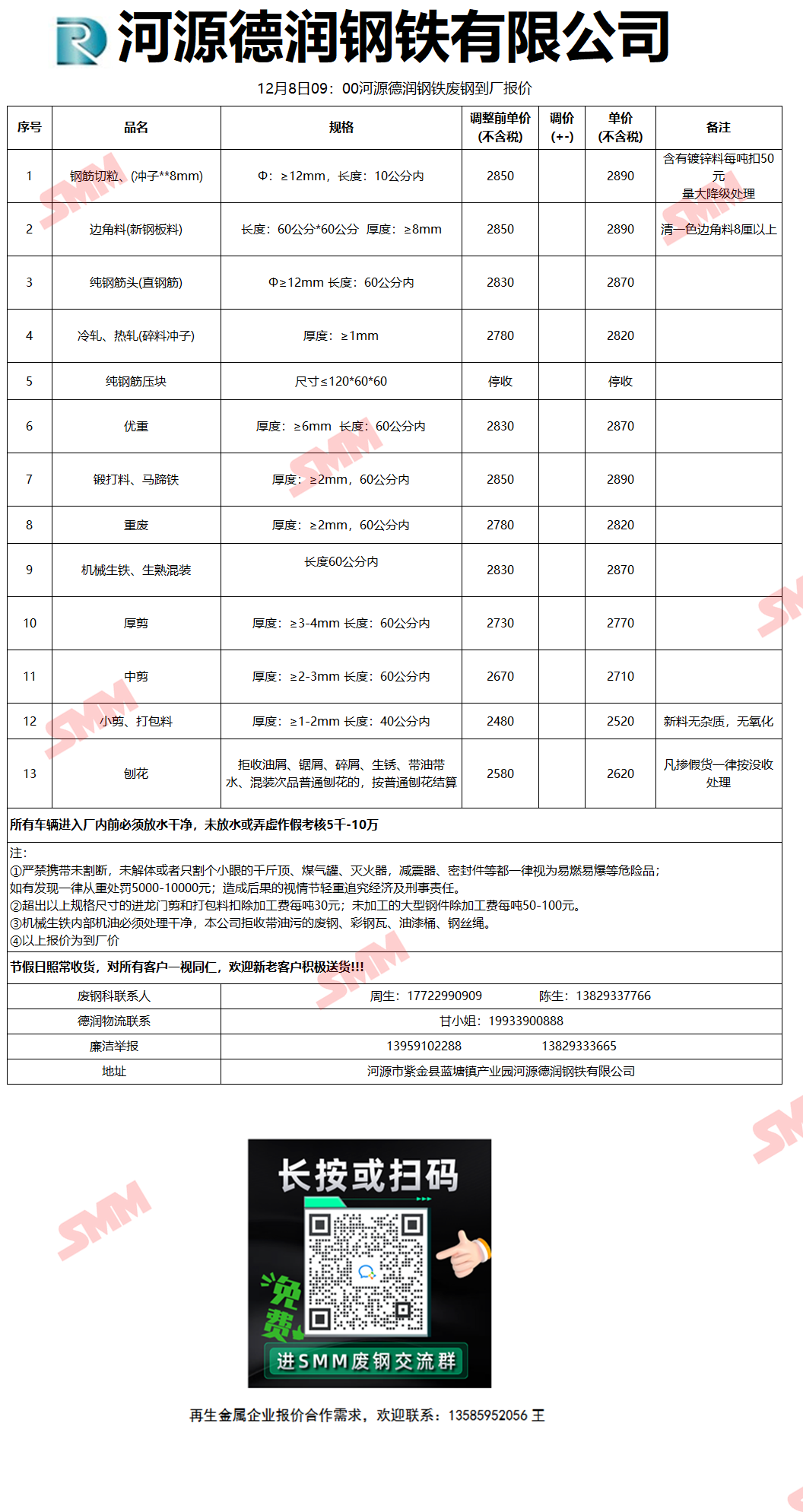 今日河源德润 废钢收购报价已更新,有货的朋友欢迎联系我们!