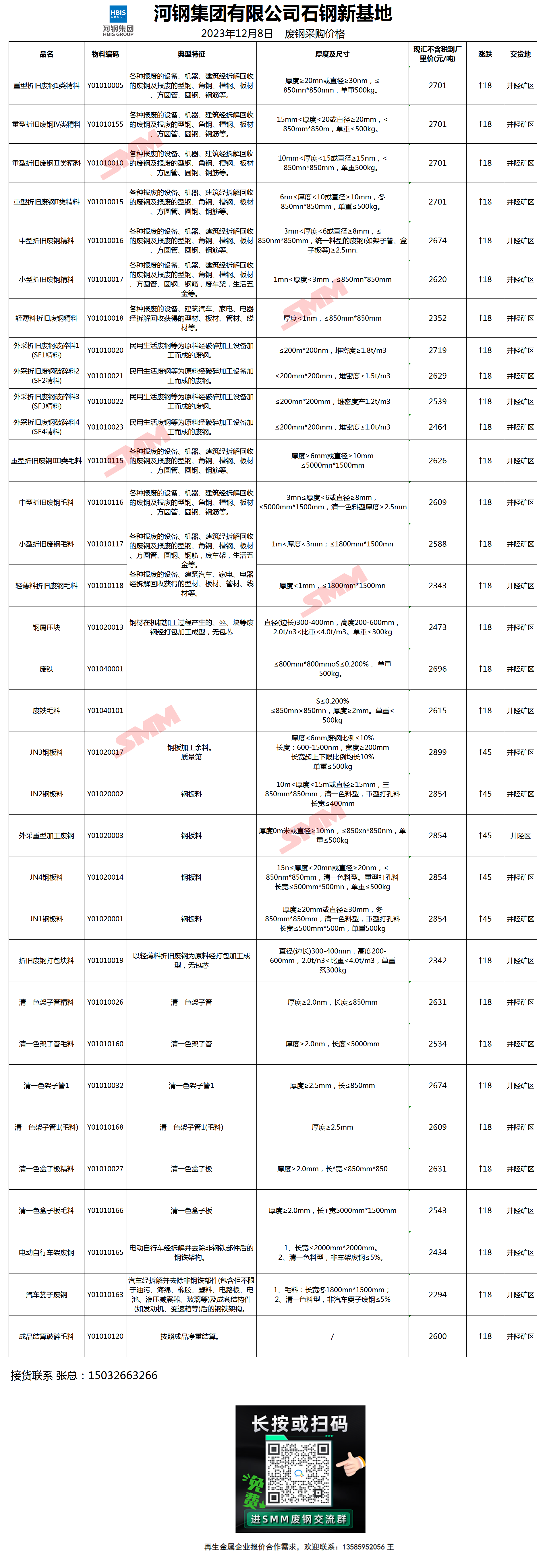 今日河钢石钢新基地 废钢采购报价已更新,有货的朋友欢迎联系我们!