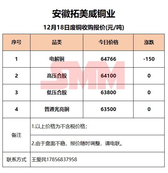 12月18日安徽拓美威 废铜收购报价