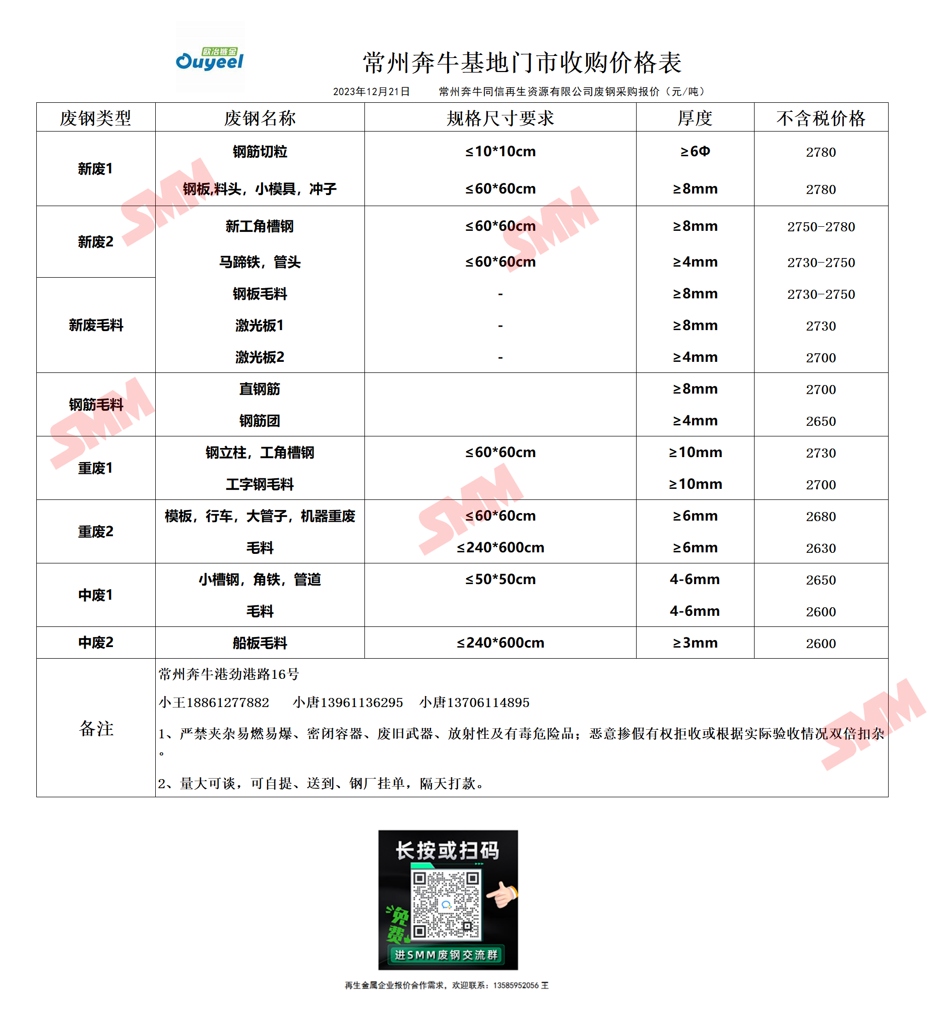 今日常州奔牛基地 废钢采购报价已更新,有货的朋友欢迎联系我们!