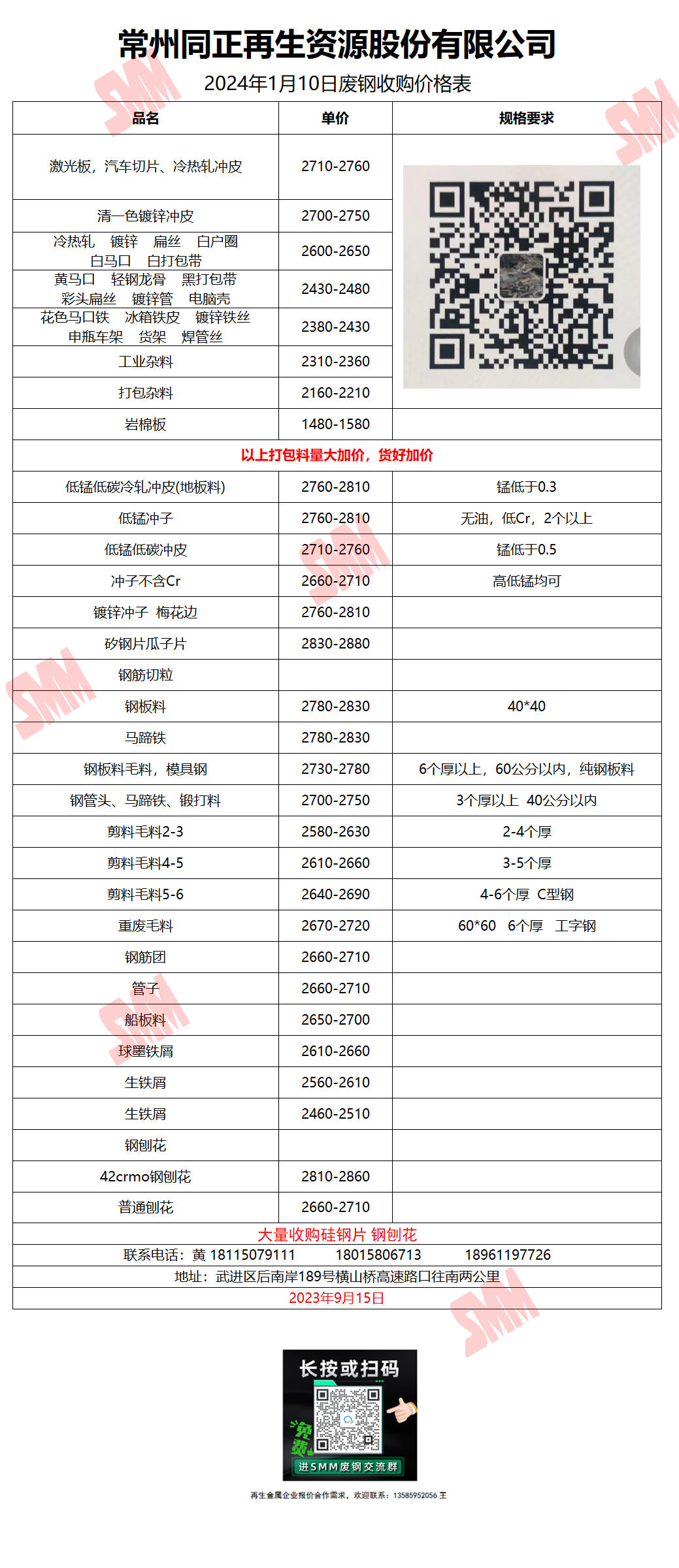 今日常州同正再生 废钢收购报价已更新,有货的朋友欢迎联系我们!