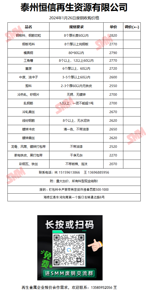 今日泰州恒信再生 废钢收购报价已更新,有货的朋友欢迎联系我们!