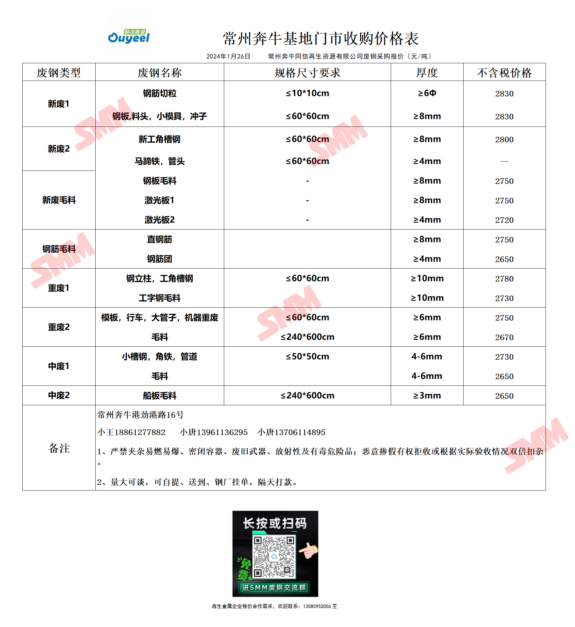 今日常州奔牛基地 废钢采购报价已更新,有货的朋友欢迎联系我们!