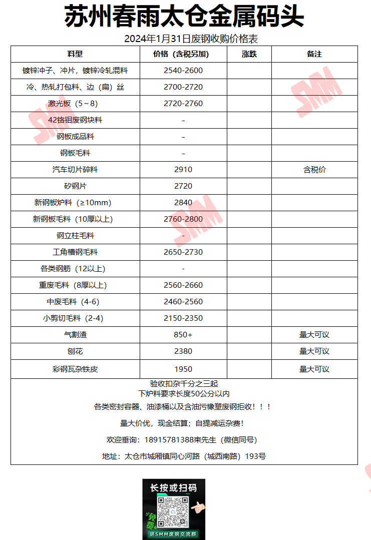 今日苏州春雨 废钢收购报价已更新,有货的朋友欢迎联系我们!