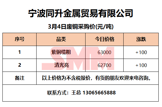 今日宁波同升金属,废铜采购报价已更新,有货的朋友欢迎联系我们!