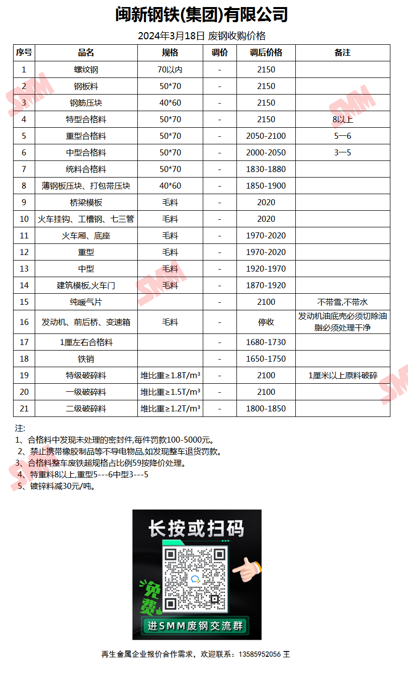 今日闽新钢铁 废钢收购报价已更新,有货的朋友欢迎联系我们!