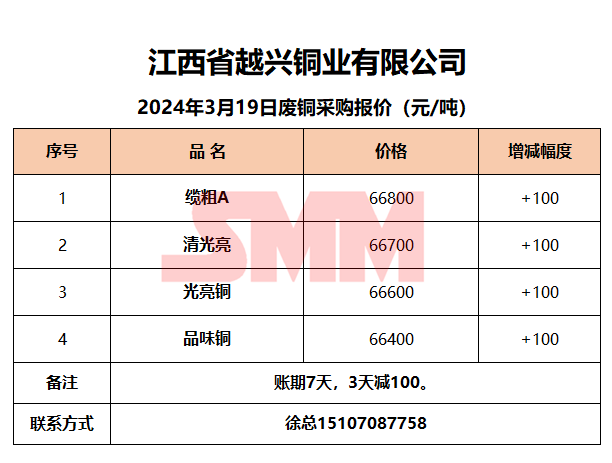 今日江西越兴,废铜采购报价已更新,有货的朋友欢迎联系我们!