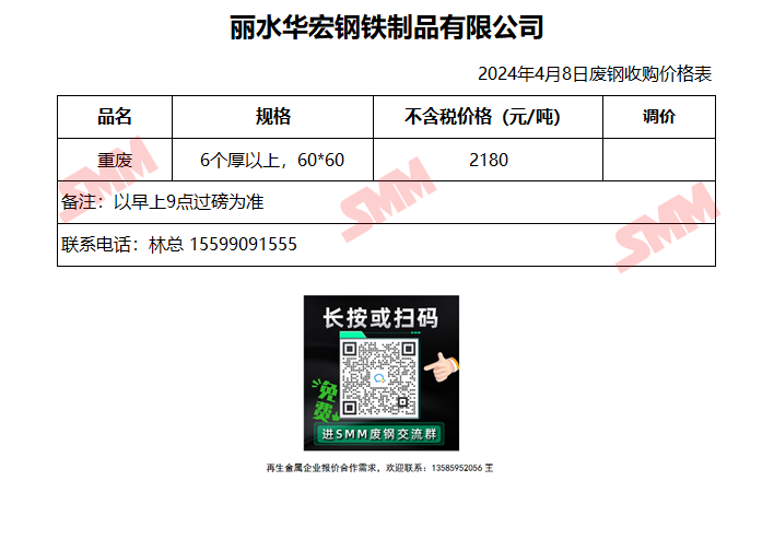 今日丽水华宏 废钢收购报价已更新,有货的朋友欢迎联系我们!