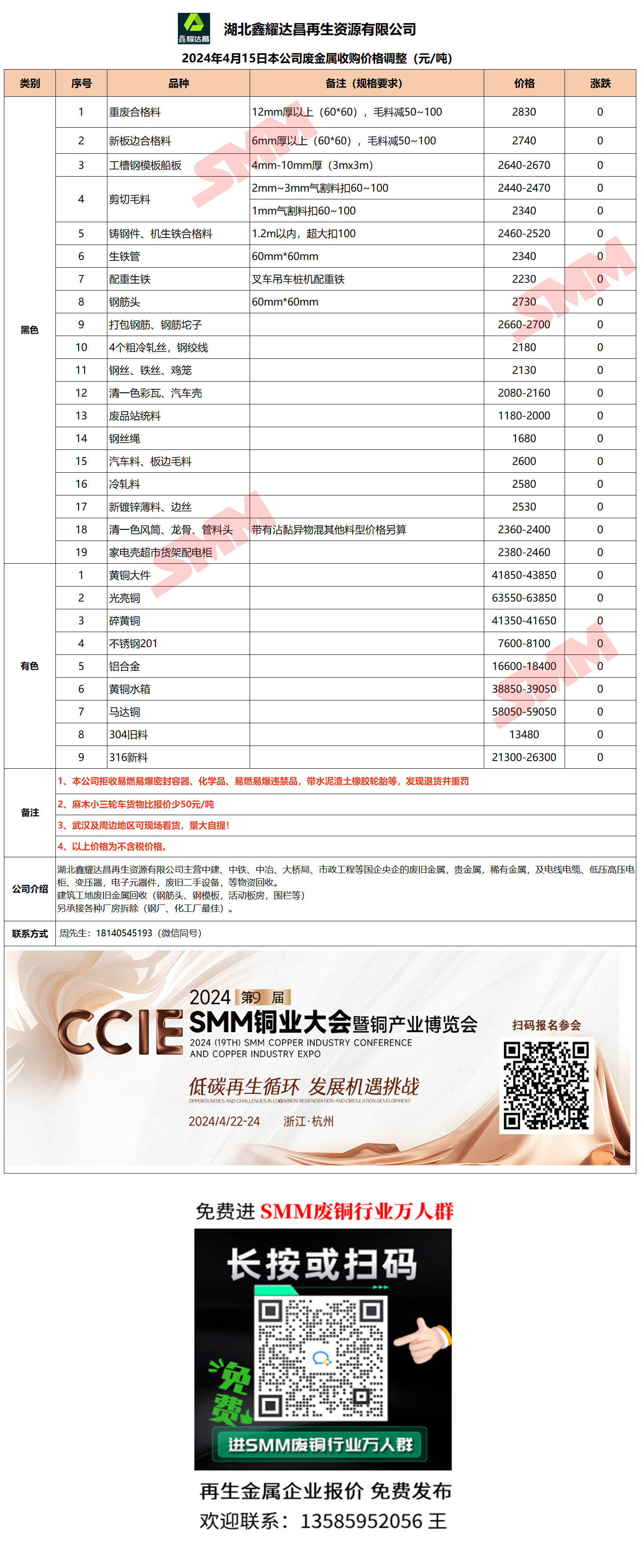 12月22日高诺(衡阳)铜业 废铜采购报价