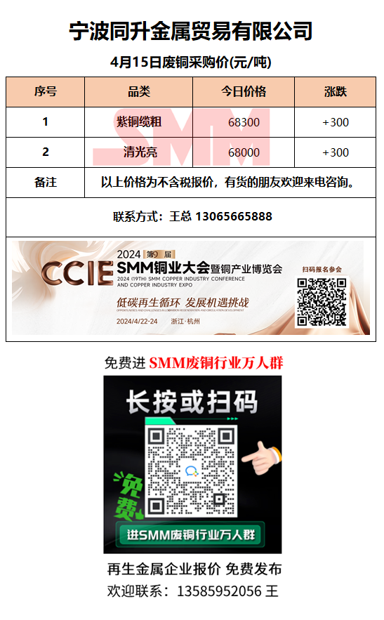 今日同升金属 废铜采购报价已更新,有货的朋友欢迎联系我们!