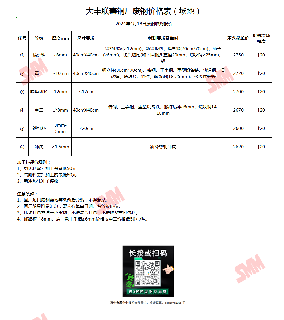 4月18日 12时05分 联鑫钢铁 废钢收购报价