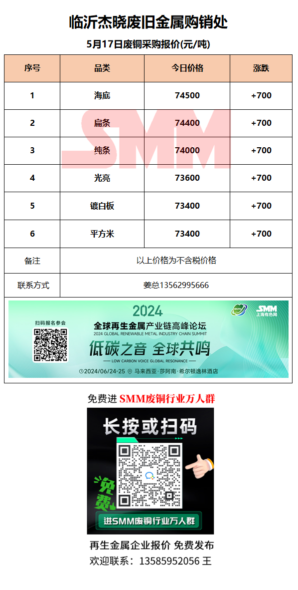 今日临沂杰晓 废铜采购报价已更新,有货的朋友欢迎联系我们!