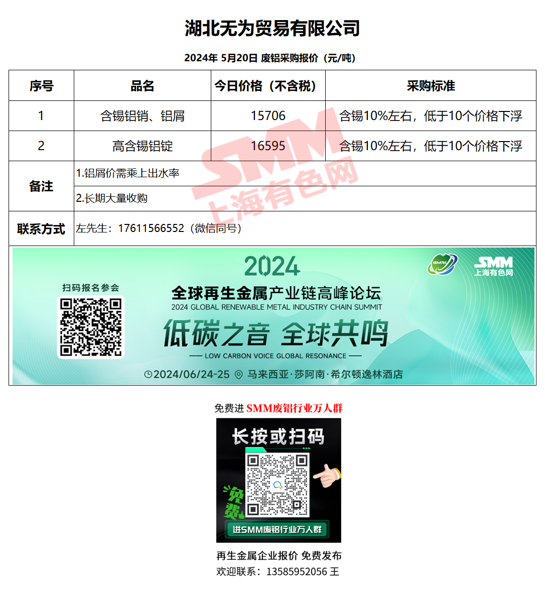 今日湖北无为 废铝采购报价已更新,有货的朋友欢迎联系我们!