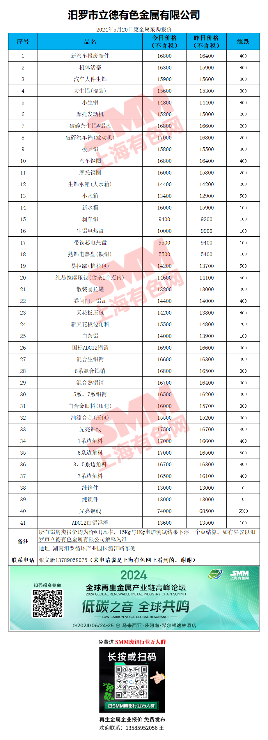 今日汨罗市立德 废铝采购报价已更新,有货的朋友欢迎联系我们!