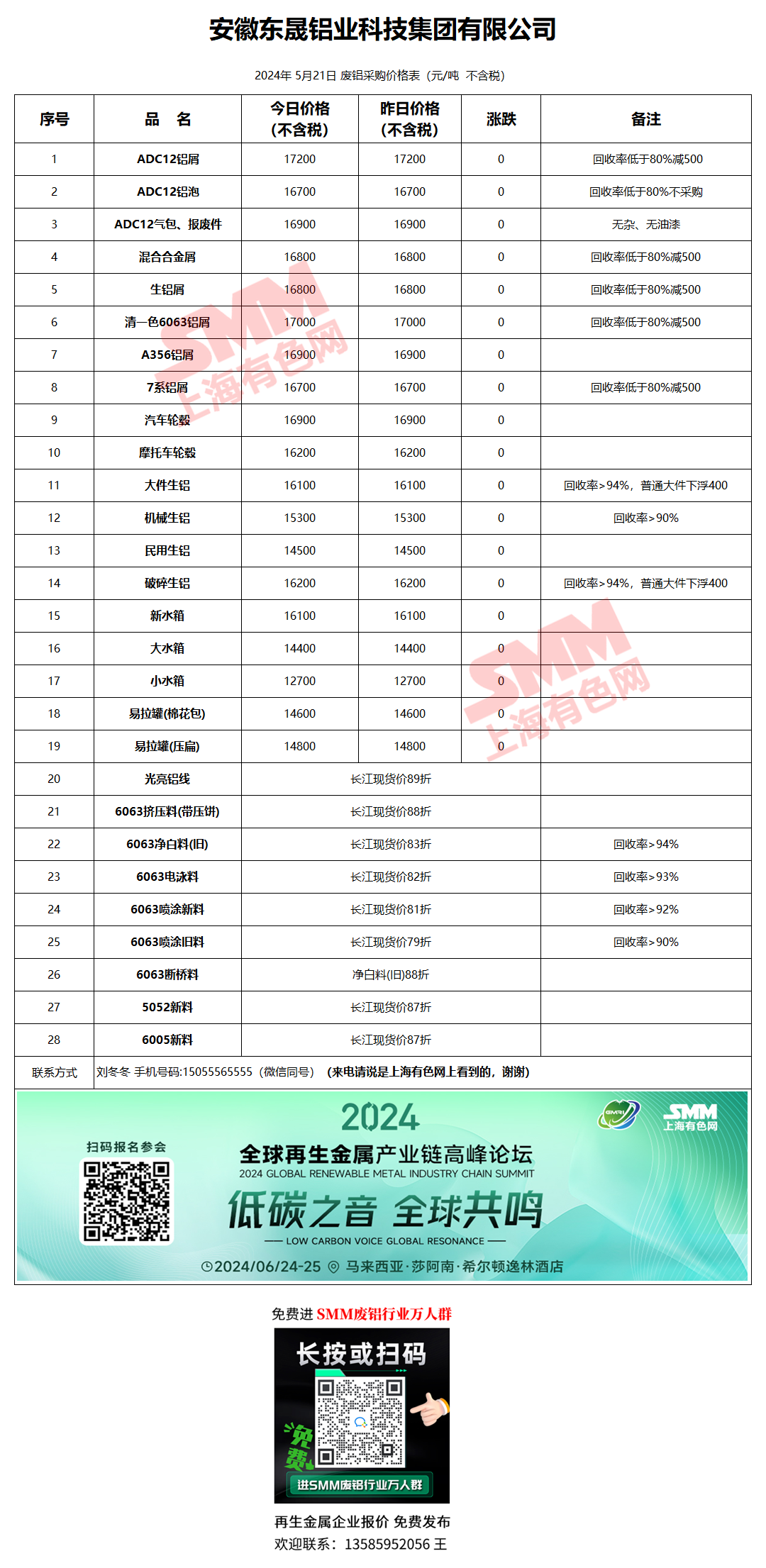 5月21日安徽东晟 废铝采购报价