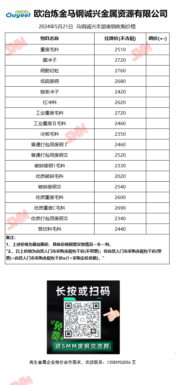 5月22日马钢诚兴 废钢收购报价