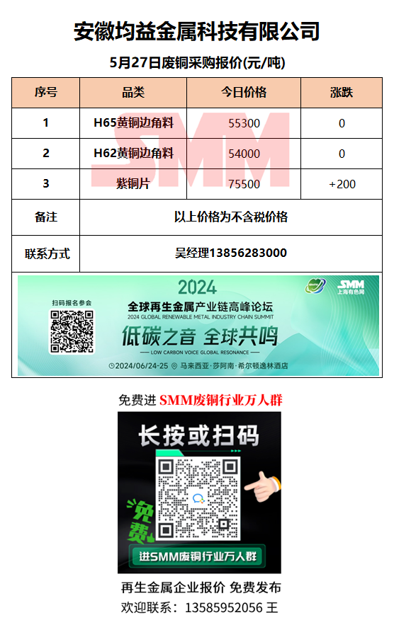 5月27日安徽均益 废铜采购报价