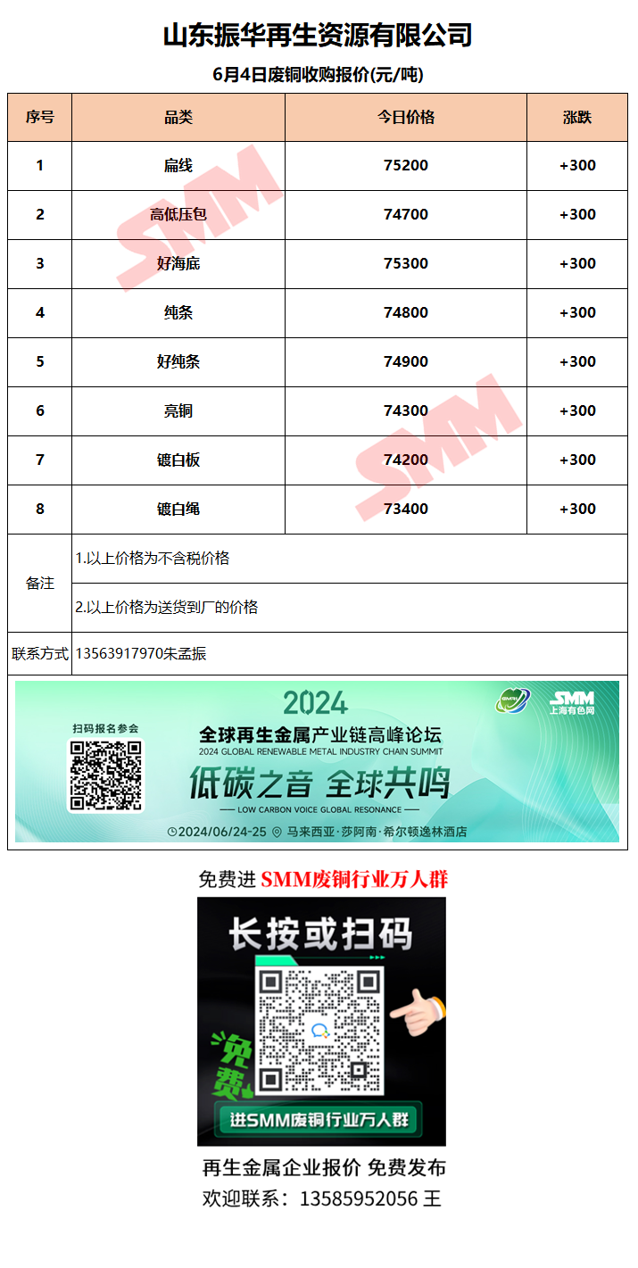 今日山东振华 废铜采购报价已更新,有货的朋友欢迎联系我们!
