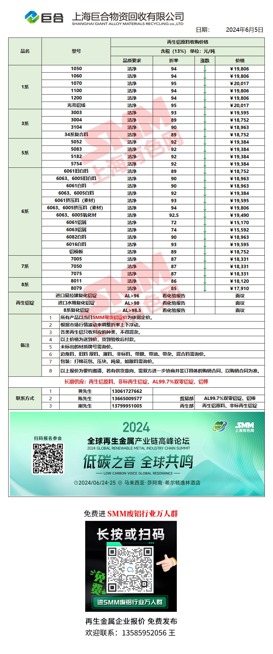 今日上海巨合 废铝采购报价已更新,有货的朋友欢迎联系我们!