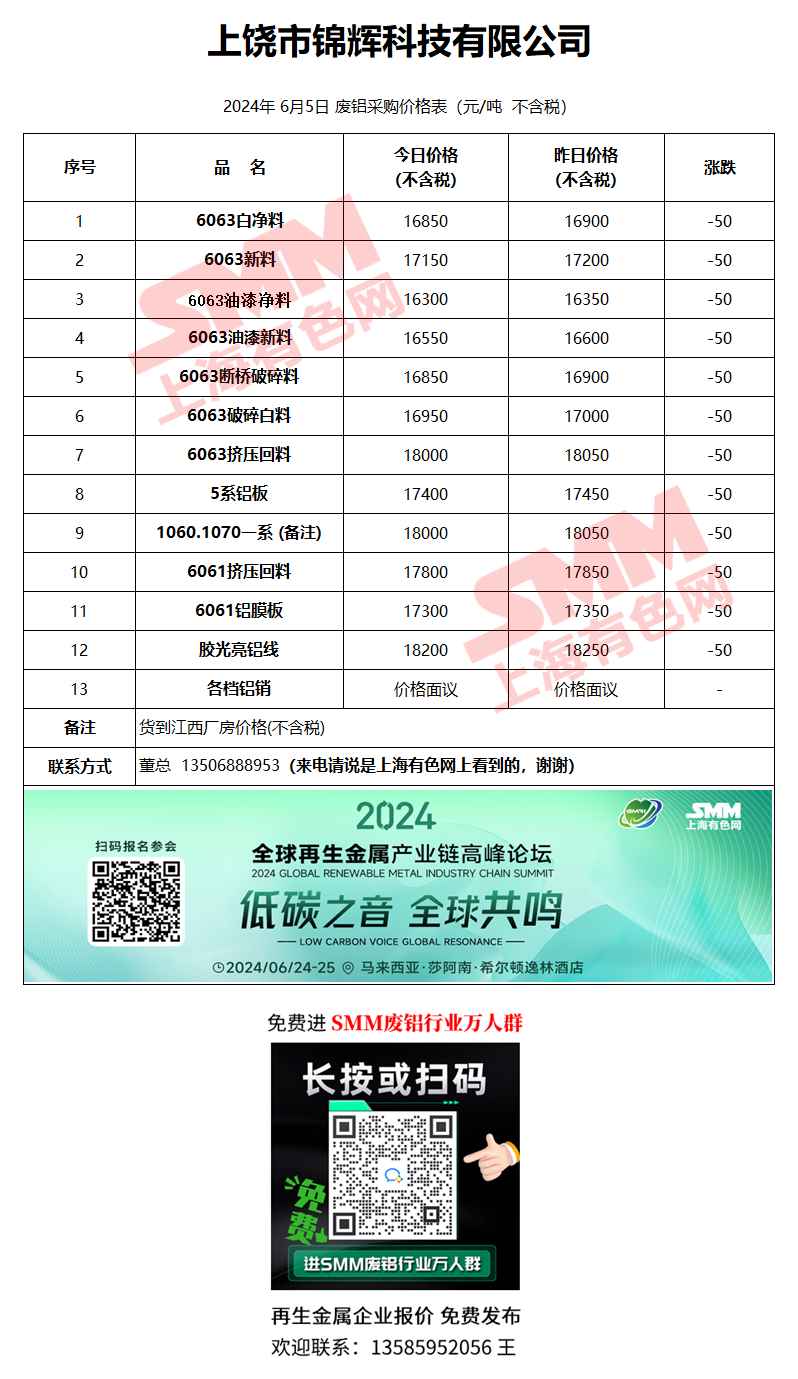 今日上饶锦辉 废铝采购报价已更新,有货的朋友欢迎联系我们!
