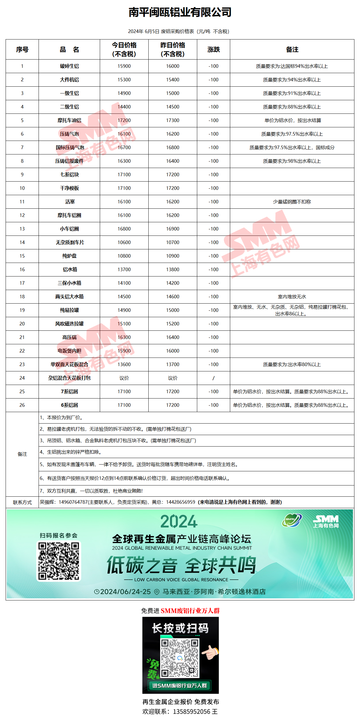 今日南平闽瓯 废铝采购报价已更新,有货的朋友欢迎联系我们!