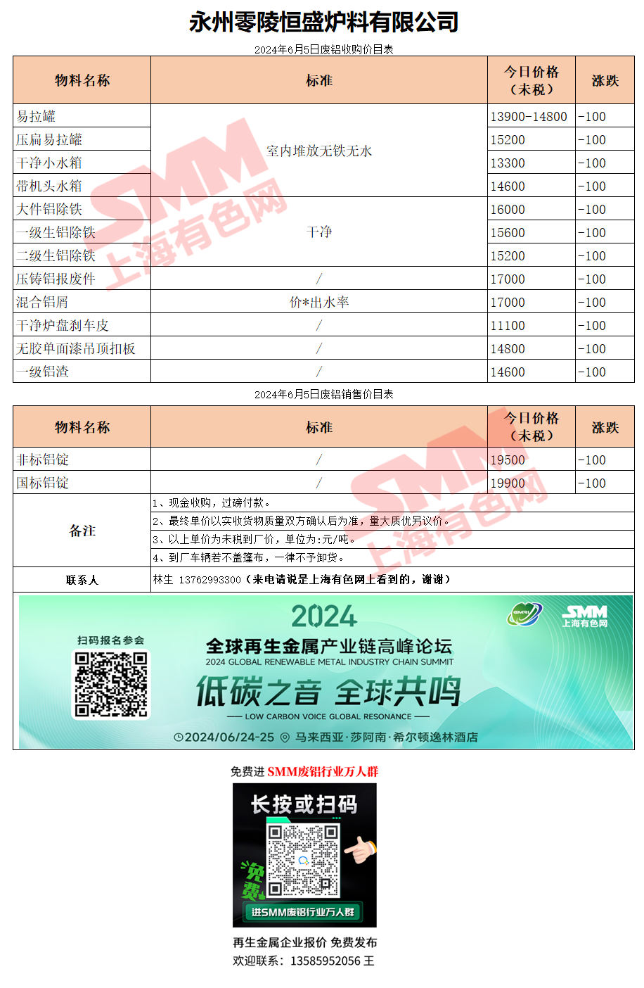 6月5日湖南恒盛 废铝采购报价