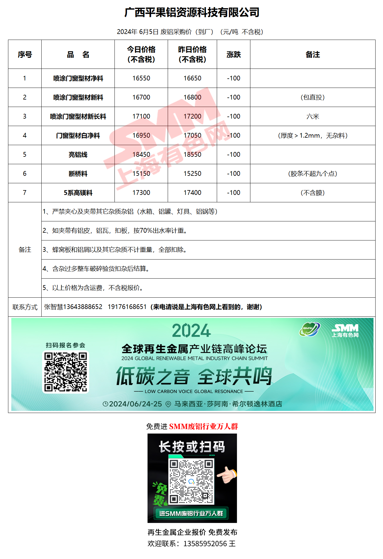 6月5日广西平果 废铝采购报价
