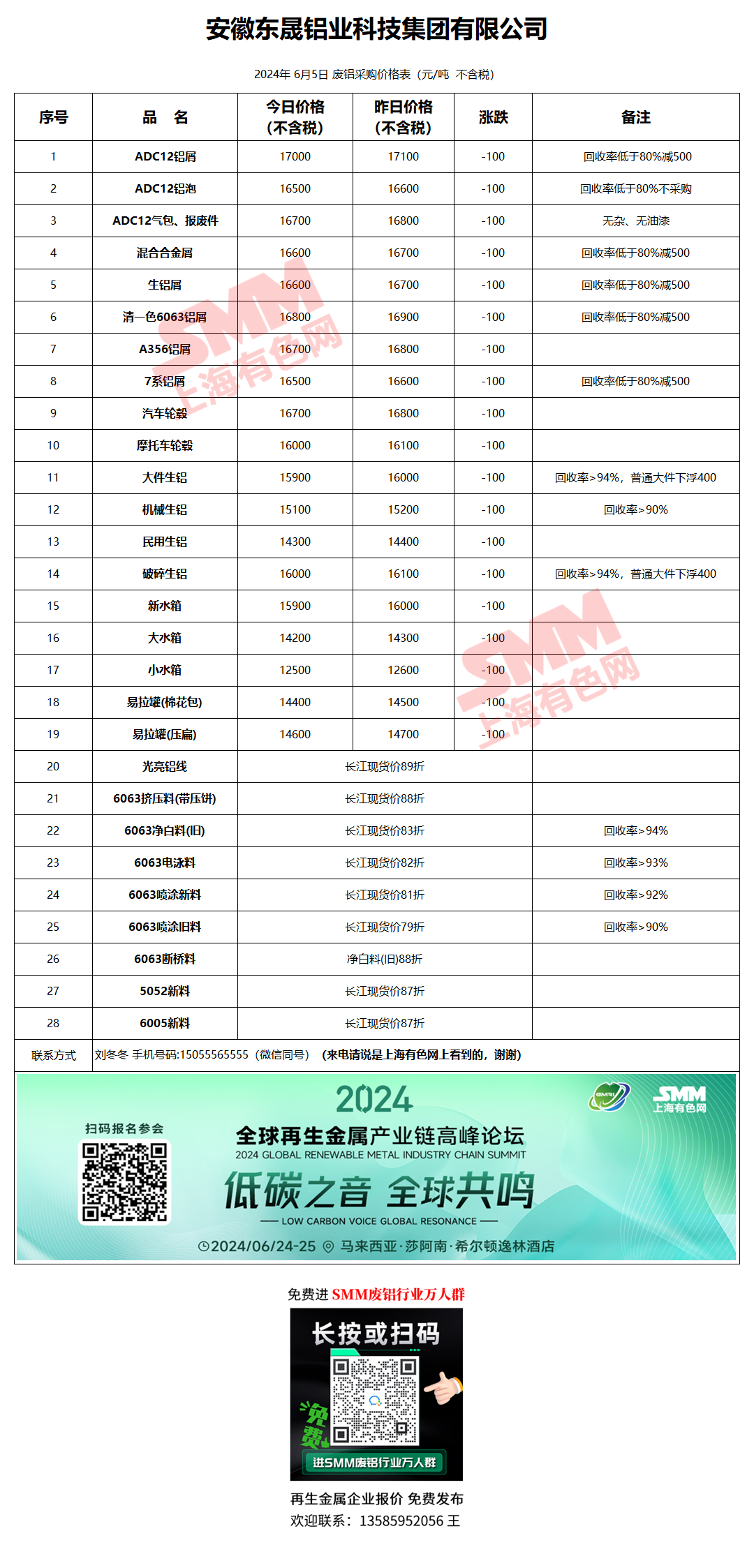 今日安徽东晟 废铝采购报价已更新,有货的朋友欢迎联系我们!